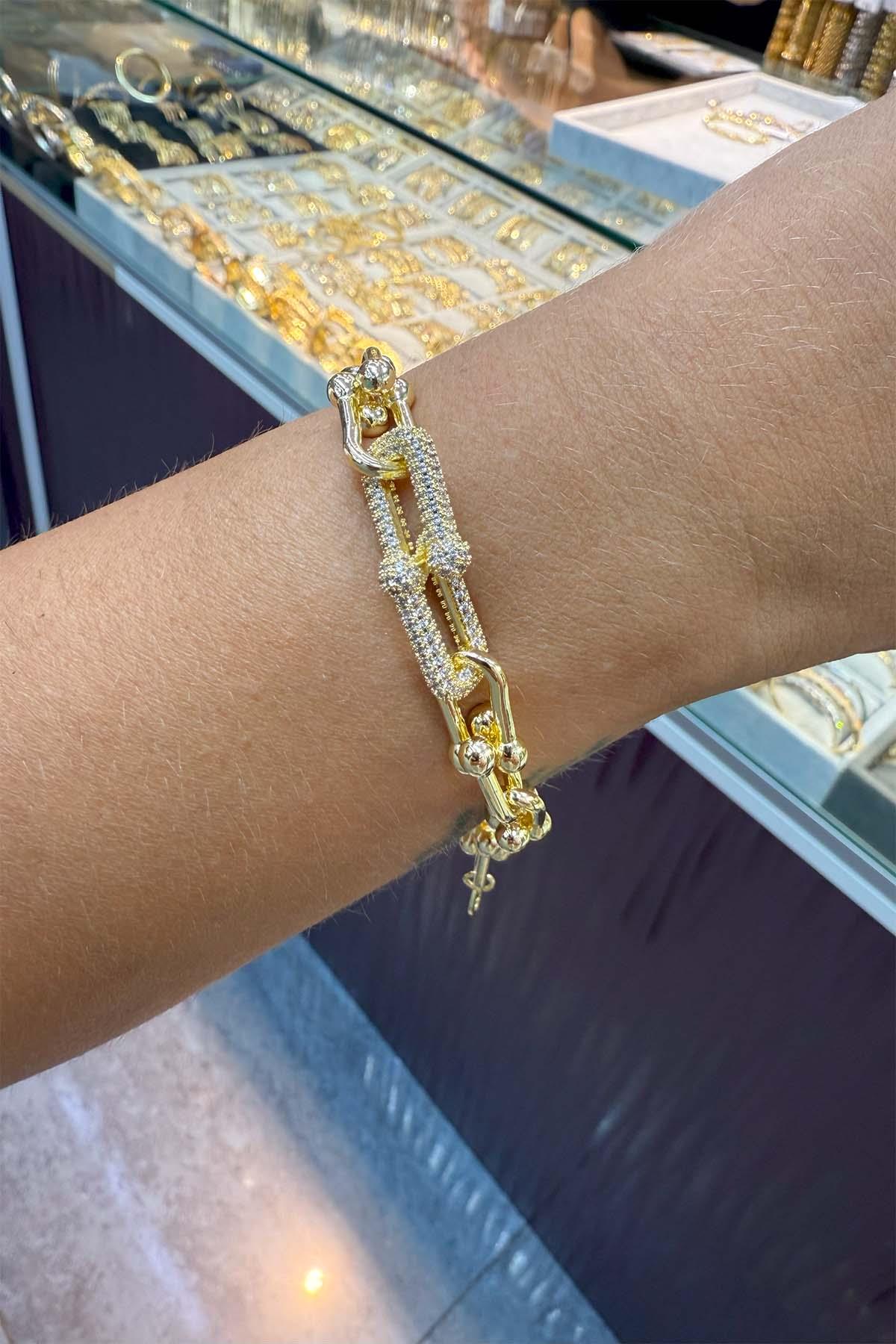 14 K Yeşil Altın Rengi Tiffany Bileklik (BLRZG20251003-ALTIN)